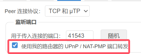 接着在 qBitTorrent 当中勾选使用我的路由器的 UPnP / NAT-PMP 端口转发项。