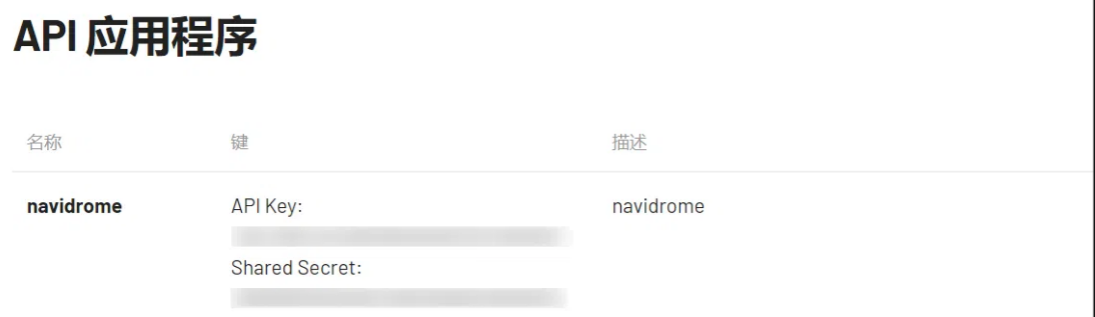 可以用于显示歌手简介、歌手头像、热门歌曲等相关信息。同样先创建一个Last.fm帐户,前往https://www.last.fm/zh/api/account/create创建 API 帐户,只用填写应用名称。提交后在API 应用程序页面复制粘贴 Key 和 Secret 到环境变量即可。