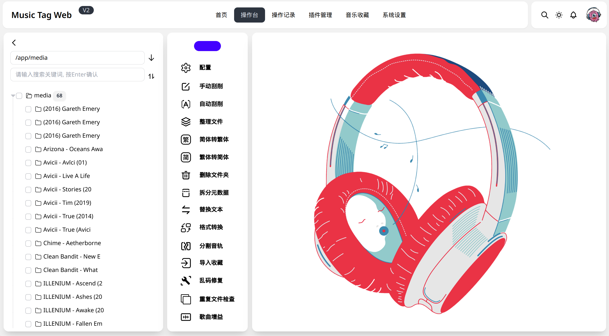 进入 MusicTag 页面,我们可以看到:左侧是待处理的文件 / 文件夹,中间是支持的部分操作。