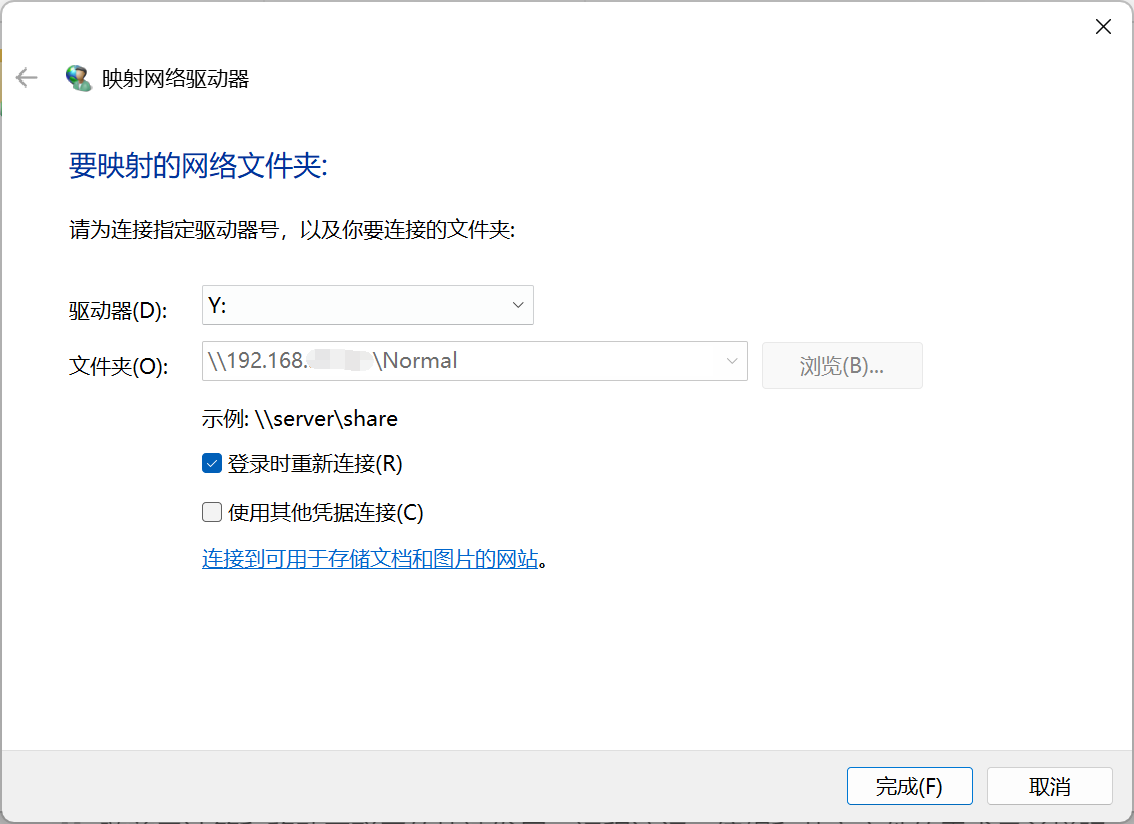 可以将文件夹映射到驱动器,便于访问。右键文件夹,选择映射网络驱动器: