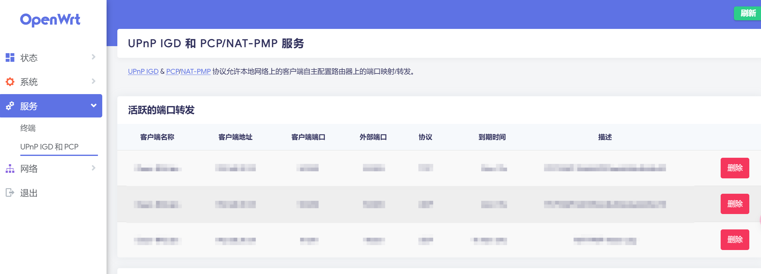 Hotplug 脚本的执行顺序基于文件名,因此使用05-miniupnpd-external-ip。示例脚本仅在wan接口更新时才执行检测和添加,请改成你实际的外部接口名称。也可以把[ "$INTERFACE" = "wan" ] &&部分删除,则会在任意接口更新时都执行脚本。