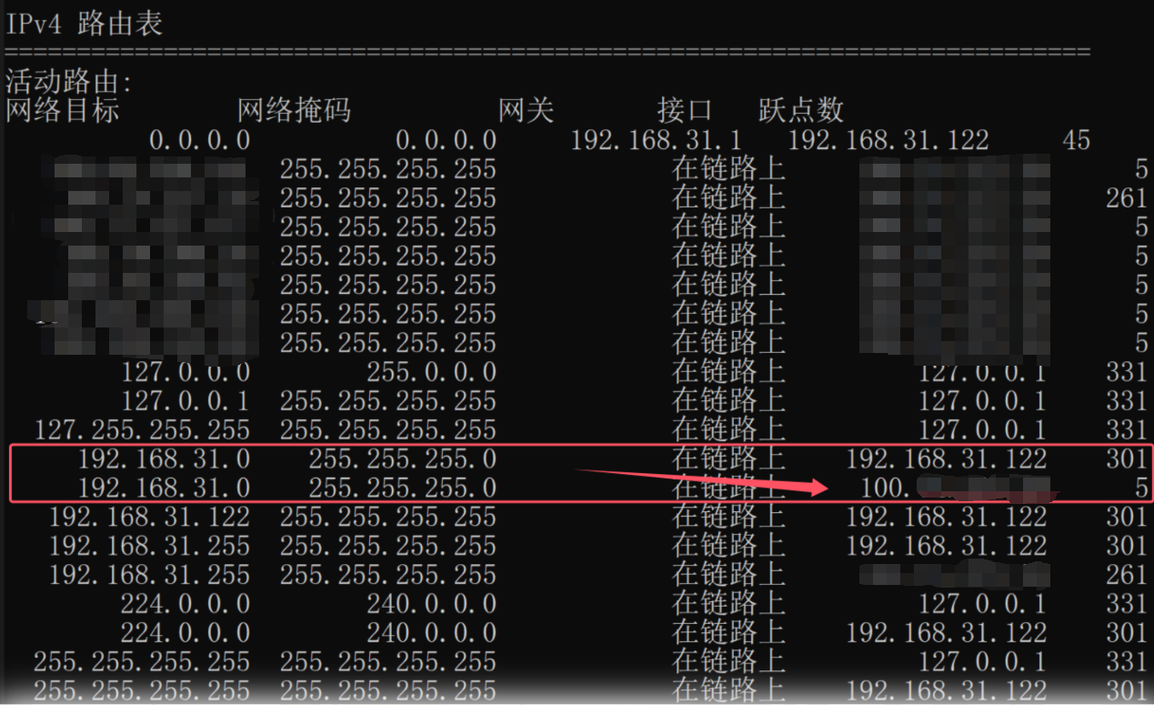 原因:访问路由器,在路由表中属于访问设备所在的局域网。启动 Tailscale 服务后,对于此局域网,设备会存在两个接口:一个是由 Tailscale 分配的地址,另一个是实际上的局域网地址。如果由 Tailscale 分配地址的跃点数比实际上局域网地址的跃点数小,设备就不会使用物理接口来发送到下一跳设备,而是使用 Tailscale 分配的地址,因此数据包无法送达。