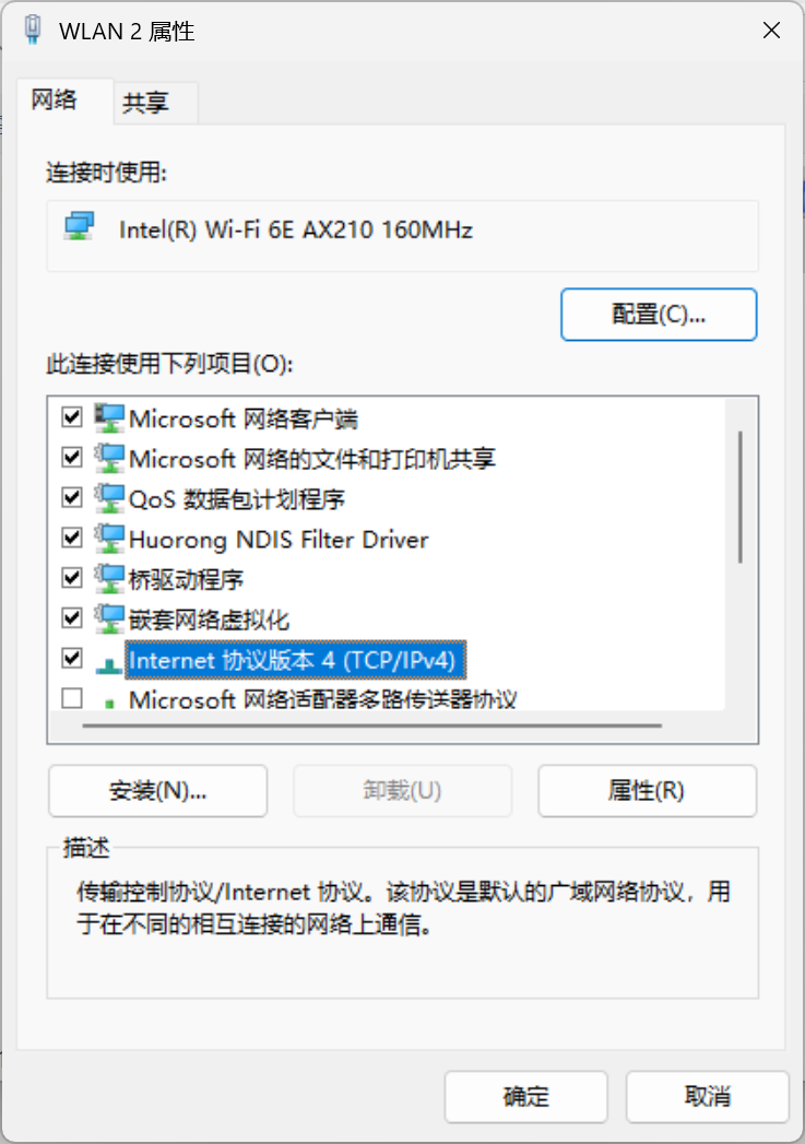 进入控制面板 - 网络和共享中心 - 更改适配器设置,在弹出的窗口中右击WLAN – 属性,打开Internet 协议版本 4 (TCP/IPv4) - 高级:
